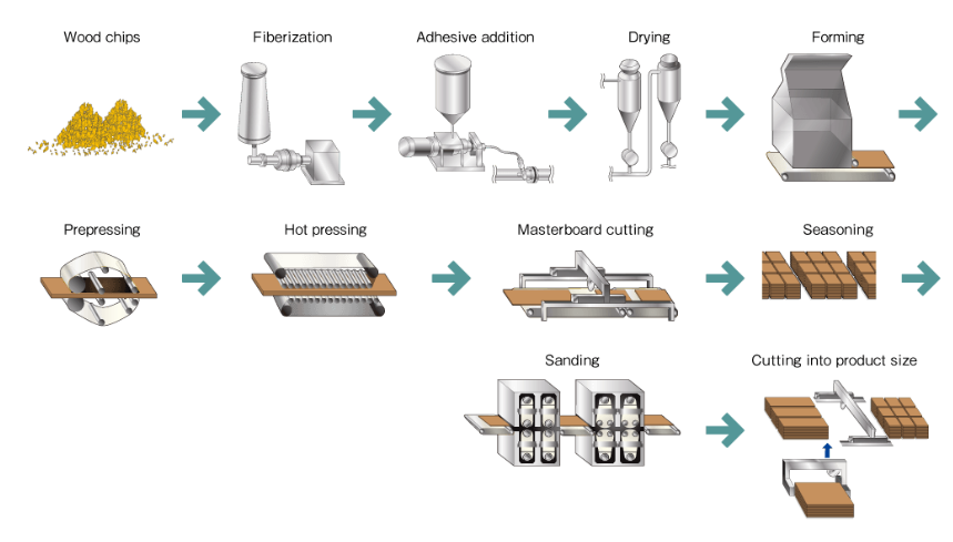 Medium-density fiberboard or MDF is a manufactured wood based product created by deconstructing hard and soft wood residuals, turning them into wood fibers. The fibers are bound with wax and are pressed together with intense pressure and heat. This forms a solid board that is denser than plywood and perfect to be bonded onto. MDF is not suitable for wet areas.